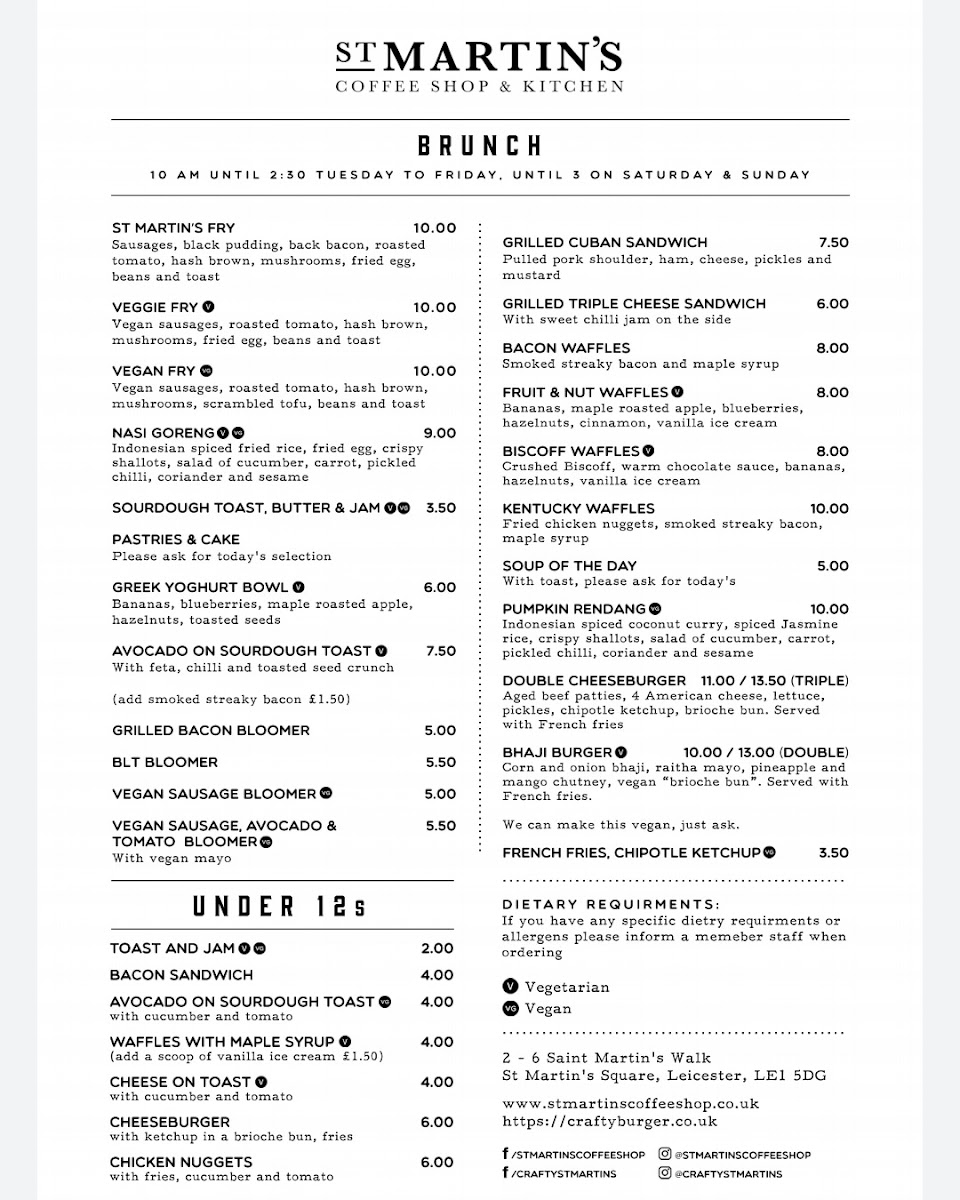 Welcome to St Martin's Coffee Shop, an independent gem nestled in the heart of Leicester at Cank St. This beloved spot is renowned for its delightful menu and warm atmosphere, perfect for any occasion—be it a casual brunch, a working lunch, or a cozy dinner that transitions into their popular Crafty Burger evenings.